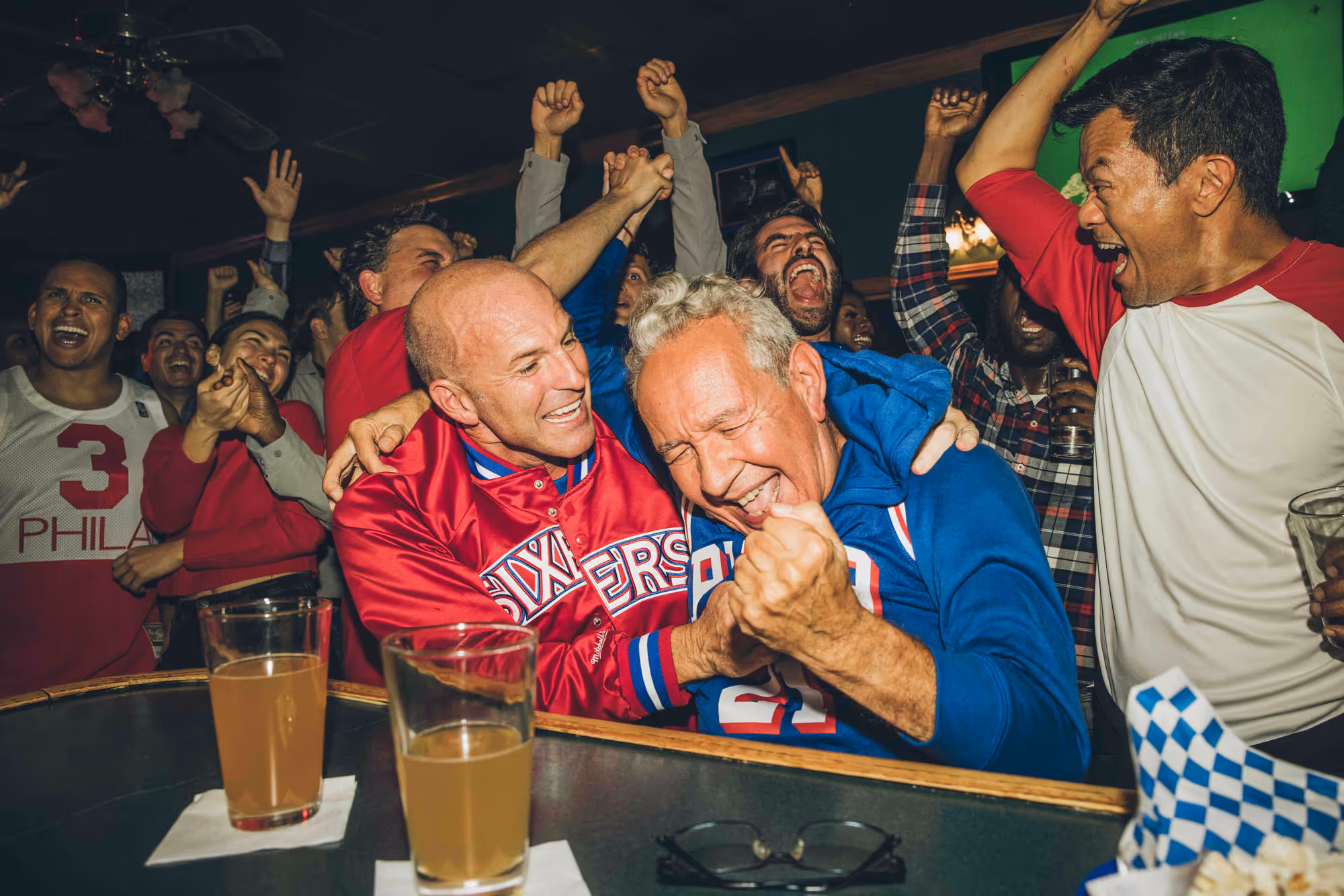 Human moments of bonding between friends, family, and the wider fan community.